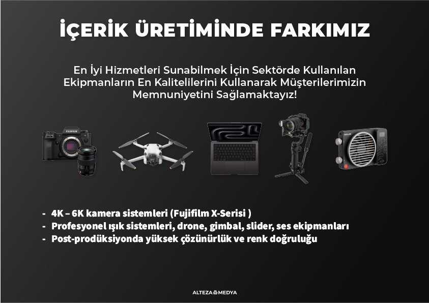 Alteza Medya’nın sunduğu kapsamlı hizmetlerle projelerinizi hayata geçirin.